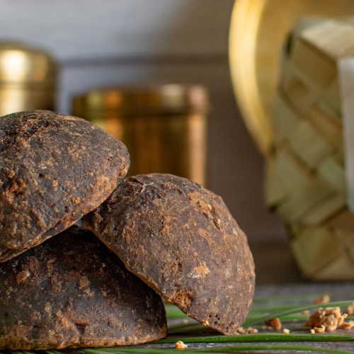 This natural process helps retain all essential minerals and gives karuppatti its deep color and rich taste.