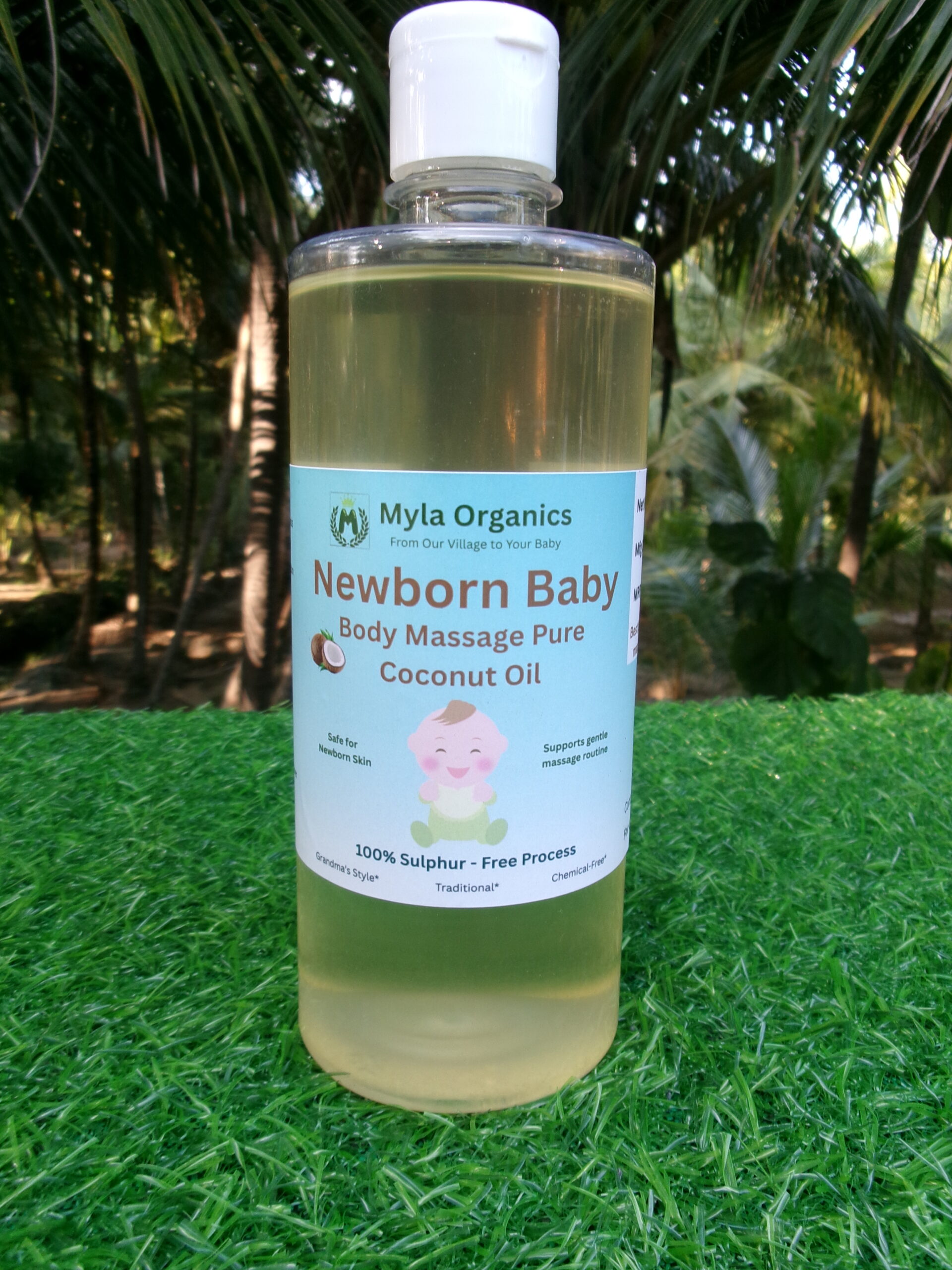 Sulphur-Free Pure Coconut Oil for Newborn Baby Body Massage – 500 ml | Cold Pressed | 100% Natural & Chemical Free