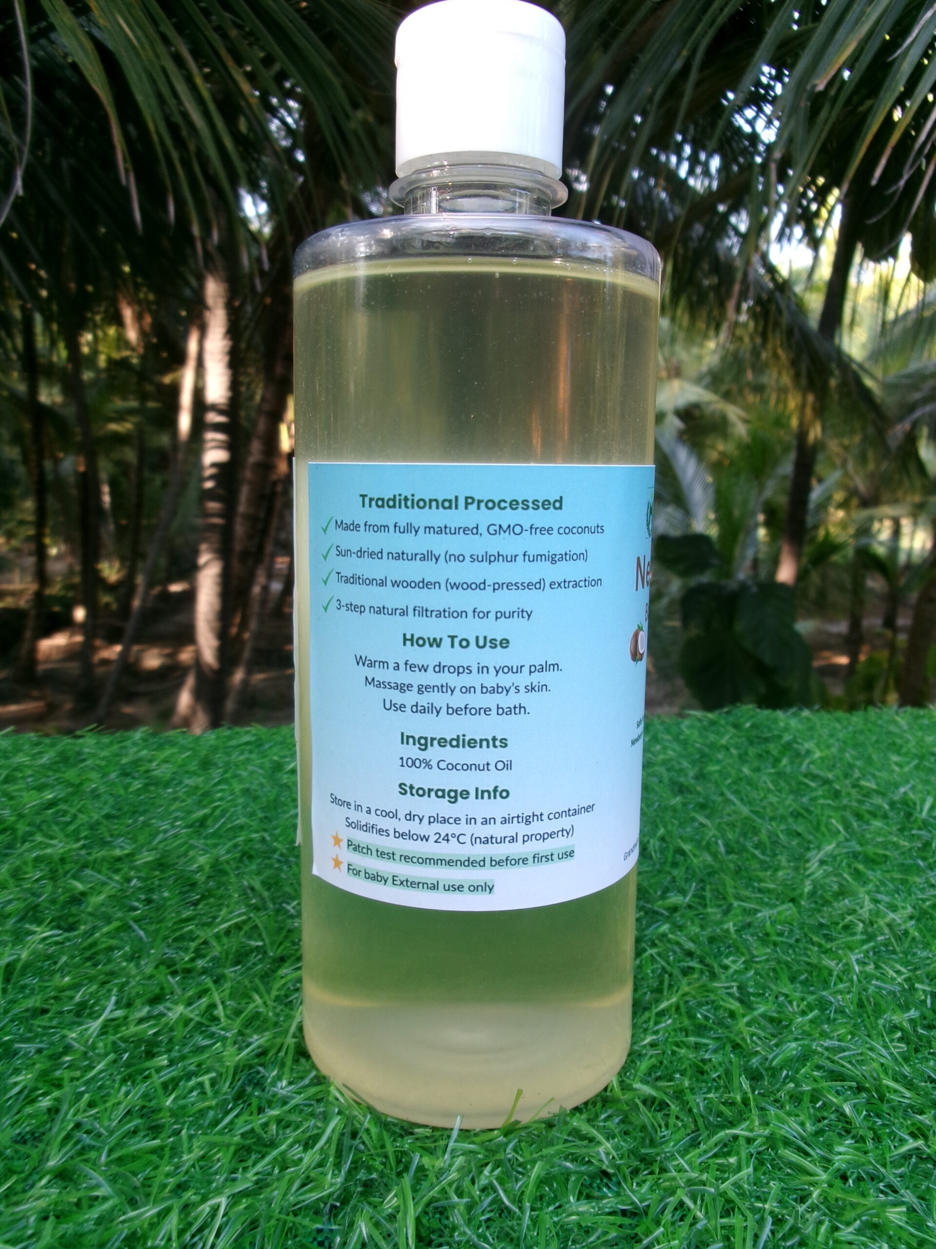 Our sulphur free coconut oil follows strict quality and hygiene standards to ensure purity and consistency. Each batch is carefully checked so that parents receive a clean, safe, and trustworthy product for their baby’s daily care routine. The natural aroma of coconut comes directly from fresh coconuts, not from artificial perfumes.